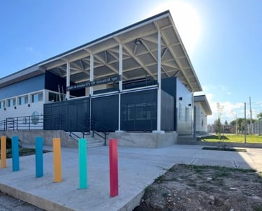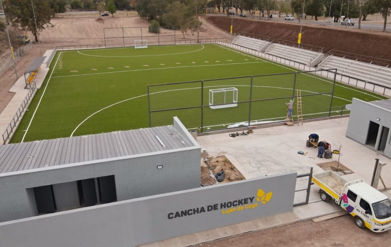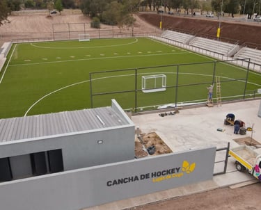 Este Proyecto se ejecutó en marco del plan de erradicación de villas dentro del municipio, donde se realizó un estadio de hockey de césped sintético, que cumple con todas las exigencias de la Federación de Hockey. En el mismo se construyeron cierres perimetrales con sistema de monitoreo, construcción de gradas con losas PREAR, camarines y baños con excelentes terminaciones. Los montajes se realizaron con grúas.